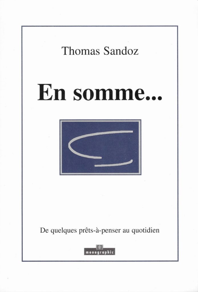 Dans l’espoir d’affermir cette “exigence de lucidité” qui lui tient tant à coeur, “En somme…” réunit quelques-unes de ces épreuves- revues et adaptées. On retrouve dans ces pages la plume rigoureuse et toujours impatiente de Thomas Sandoz, dont on connaît aussi l’écriture théâtrale, le goût pour la chanson francophone et la passion du récit.»